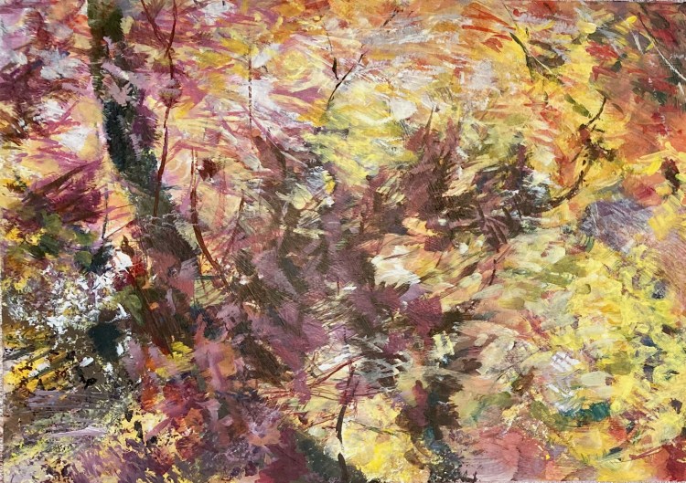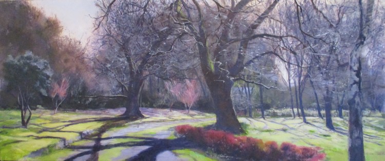 Gardens “Dierdre’s Garden”. large. SOLD. “Gone Garden”. Acrylic on paper. SOLD. “Dierdre’s Garden #2” (Seaside Daisies). SOLD. (Large). “Three Hats”. “Pirianda Gardens”. SOLD. Canterbury Gardens SOLD “Boatshed, Nicholas Memorial Gardens”. SOLD. (Large). Through autumn’s bright shadows. Acrylic on paper. Unframed. “Winter filligree”. 762 x 305. SOLD. ‘Low Light’, Nicholas Memorial Gardens, Olinda, Vic. Acrylic on canvas, 610 x 455.